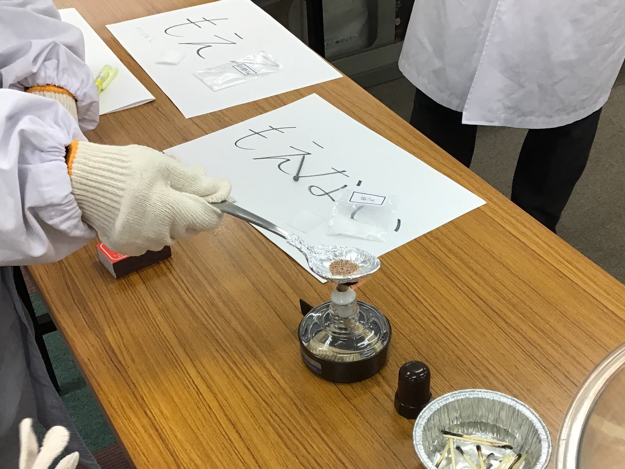 理科実験教室で、 アルコールランプを使って「炎の様子」を 調...