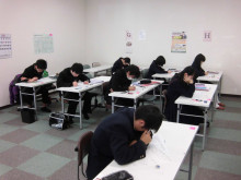 生徒さんに分かれて、入試本番さながらの模試を受けます。