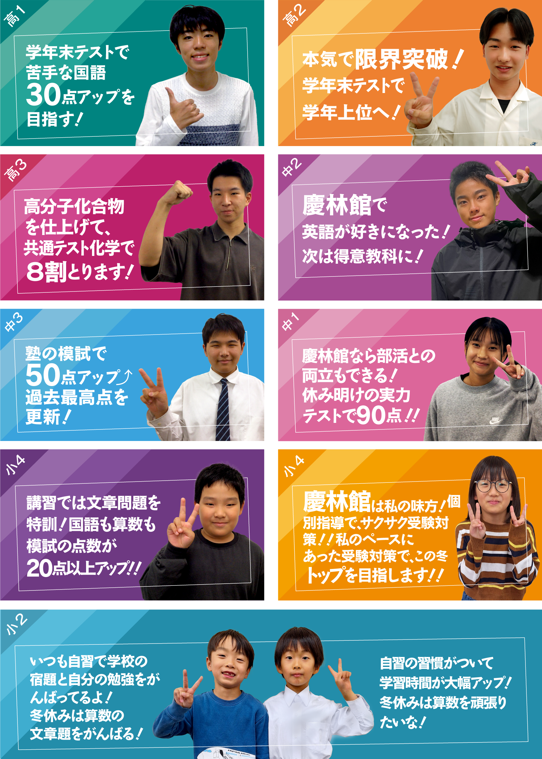 国公立大学二次対策・私大対策| 対象学年 | 3年 | 教科 | 英語・数学・国語・物理・化学・生物・日本史探求 |